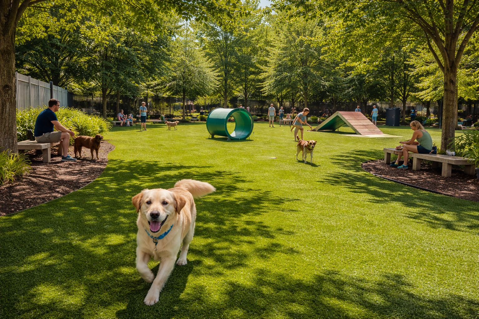 Premium pet-friendly artificial grass installation in Canada—engineered for superior drainage, odour control, and long-term durability. Enjoy a pristine lawn without mud, dead patches, or lawn damage caused by active pets.